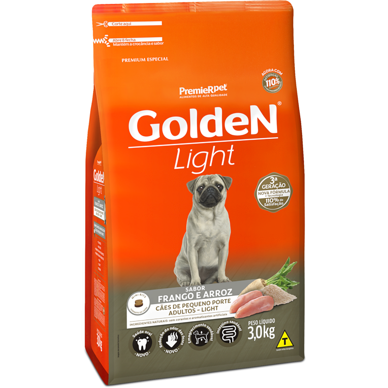 Ração Golden Light - Cães de Porte Pequeno - Redução de Peso Obesos - Sabor Frango e Arroz - Premier Pet