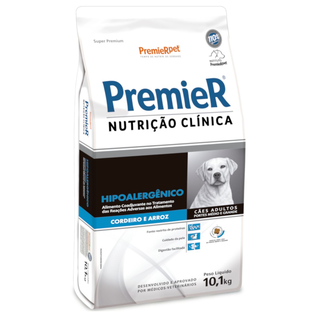 Ração Premier Nutrição Clínica Hipoalergênico - Cães Adultos Porte Médio e Grande - Sabor Cordeiro e Arroz - Super Premium