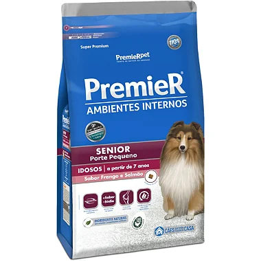 Ração Premier Super Premium Ambientes Internos Sênior Porte Pequeno - Cães Idosos a Partir de 7 Anos - Sabor Frango e Salmão